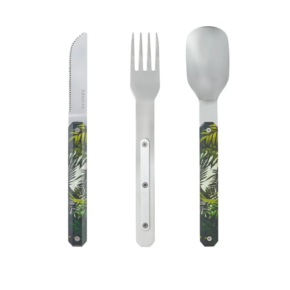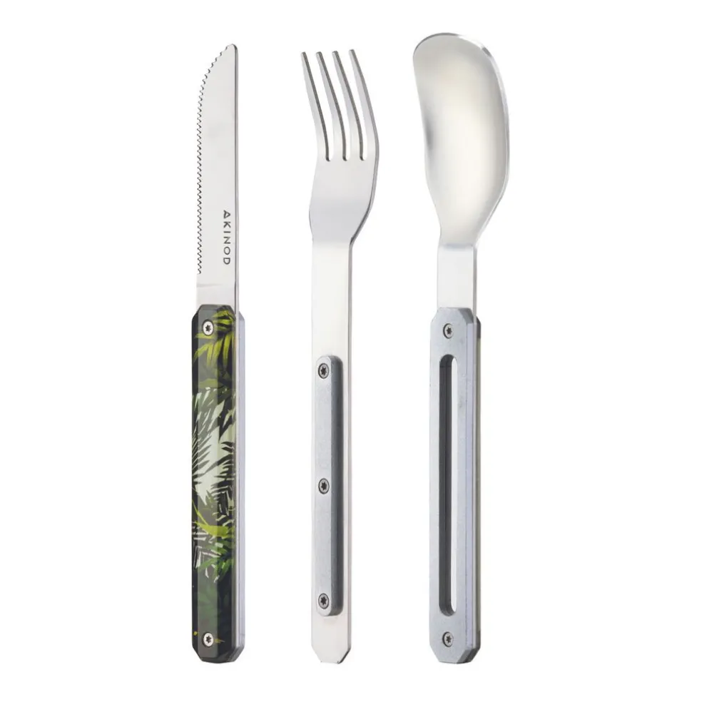 Compacts, durables, élégants, les couverts Akinod 12H34 se révèlent de précieux outils du quotidien pour accompagner vos repas nomades, sur le toit du monde ou sur un banc, à même le sol, accoudé à un coin de table ou confortablement installé devant son bureau.