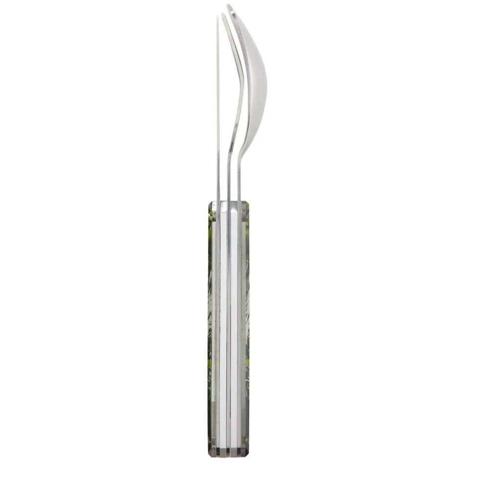 Aimantés, couteau, cuillère et fourchette s’assemblent pour se ranger facilement. Détachés, ces couverts offrent un confort inégalé.