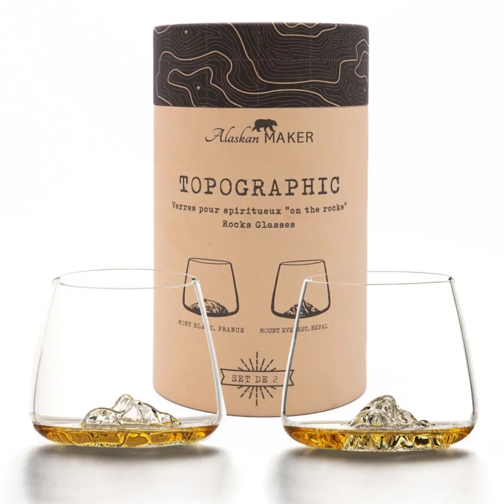 Alaskan maker Verres*Set de 2 verres à whisky TOPOGRAPHIC Mont Blanc et Everest