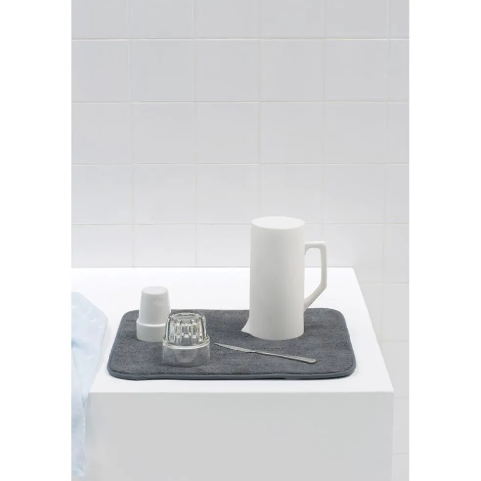 Le tapis de séchage de la collection Sink Side de Brabantia est idéal pour faire sécher votre vaisselle sur votre plan de travail. SA structure en microfibre permet d’absorder l’eau tout en gardant le plan de travail au sec. Surface douce anti-rayures. Le tapis se plie pour un rangement facile et se lave en machine à 60°C.