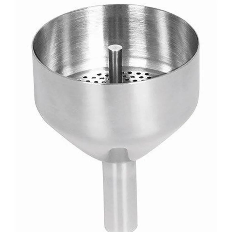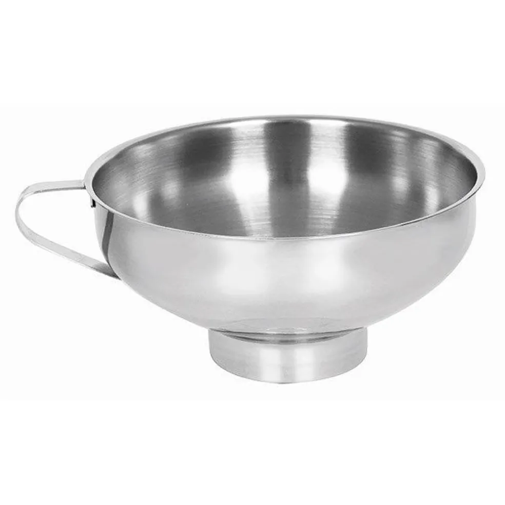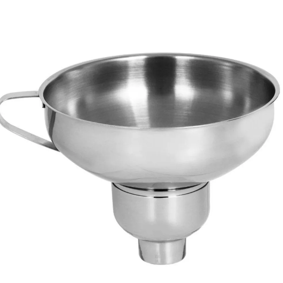 Comprend : 1 entonnoir à bocal (diamètre haut 13,6 cm, diamètre bas 5,7 cm), 1 réducteur pour petits bocaux et 1 réducteur pour bouteilles avec filtre amovible.