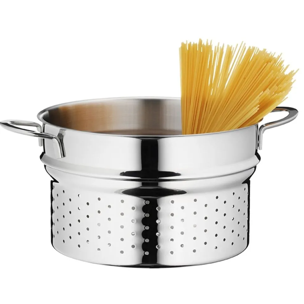 La passoire intégrée permet de facilement égoutter les pâtes. Le cuit-pâtes s’utilise également sans la passoire comme marmite pour la cuisson des moules ou la préparation de soupes. Il est vendu avec un couvercle en verre.