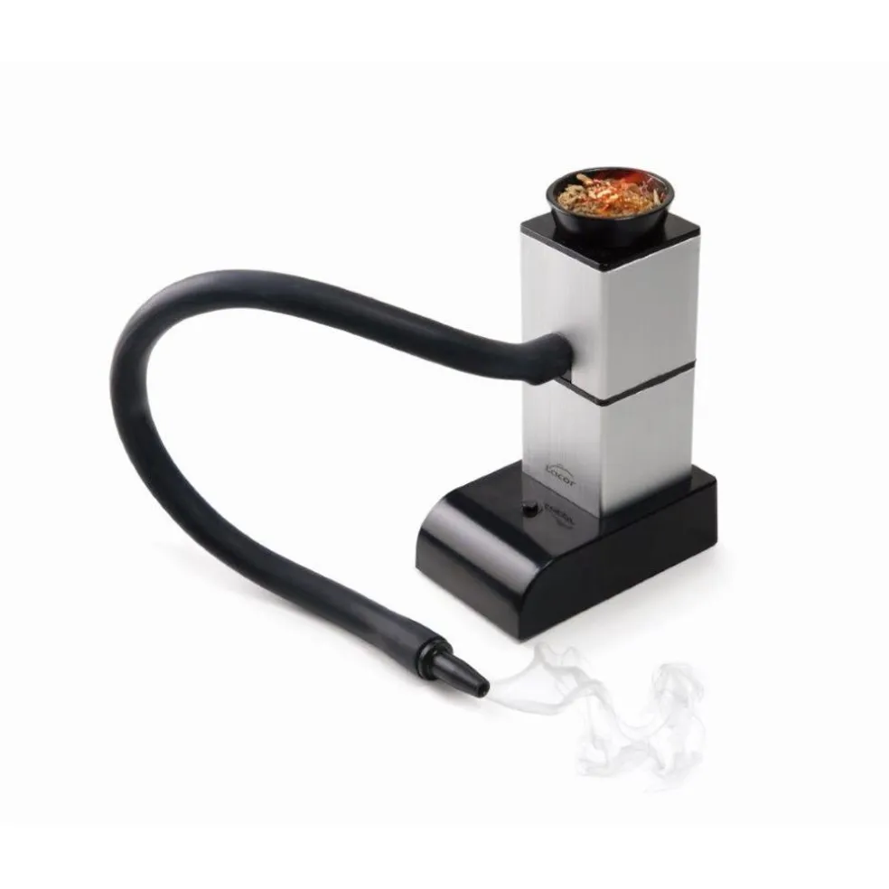 Outil utilisé par les Grands Chefs, ce fumoir est idéal pour apporter une touche de créativité et un « petit plus » à vos plats. Jouez avec les goûts, les saveurs et les odeurs grâce aux arômes spéciaux et personnalisés que vous utiliserez pour tous types d’aliments.