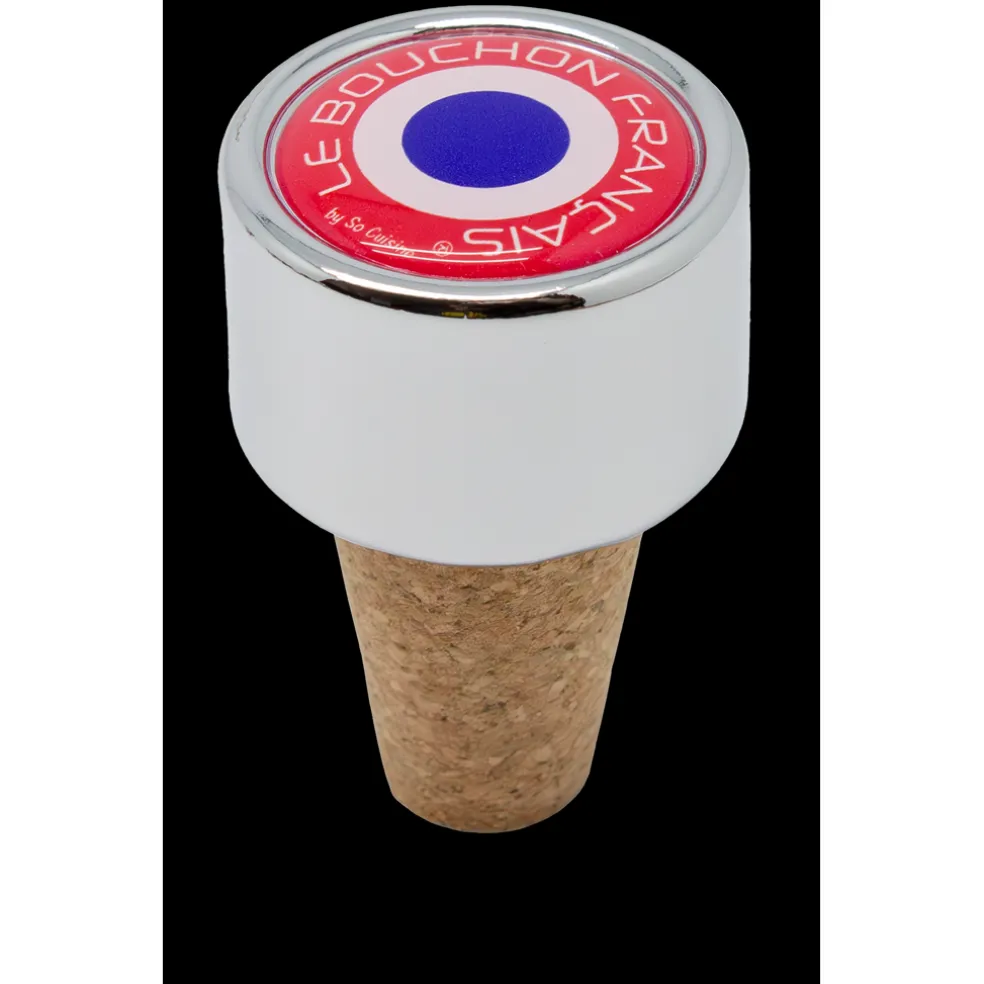 Un bouchon à vin traditionnel aux couleurs de la France, il s’adapte à toutes les bouteilles à vin. En acier chromé et liège.