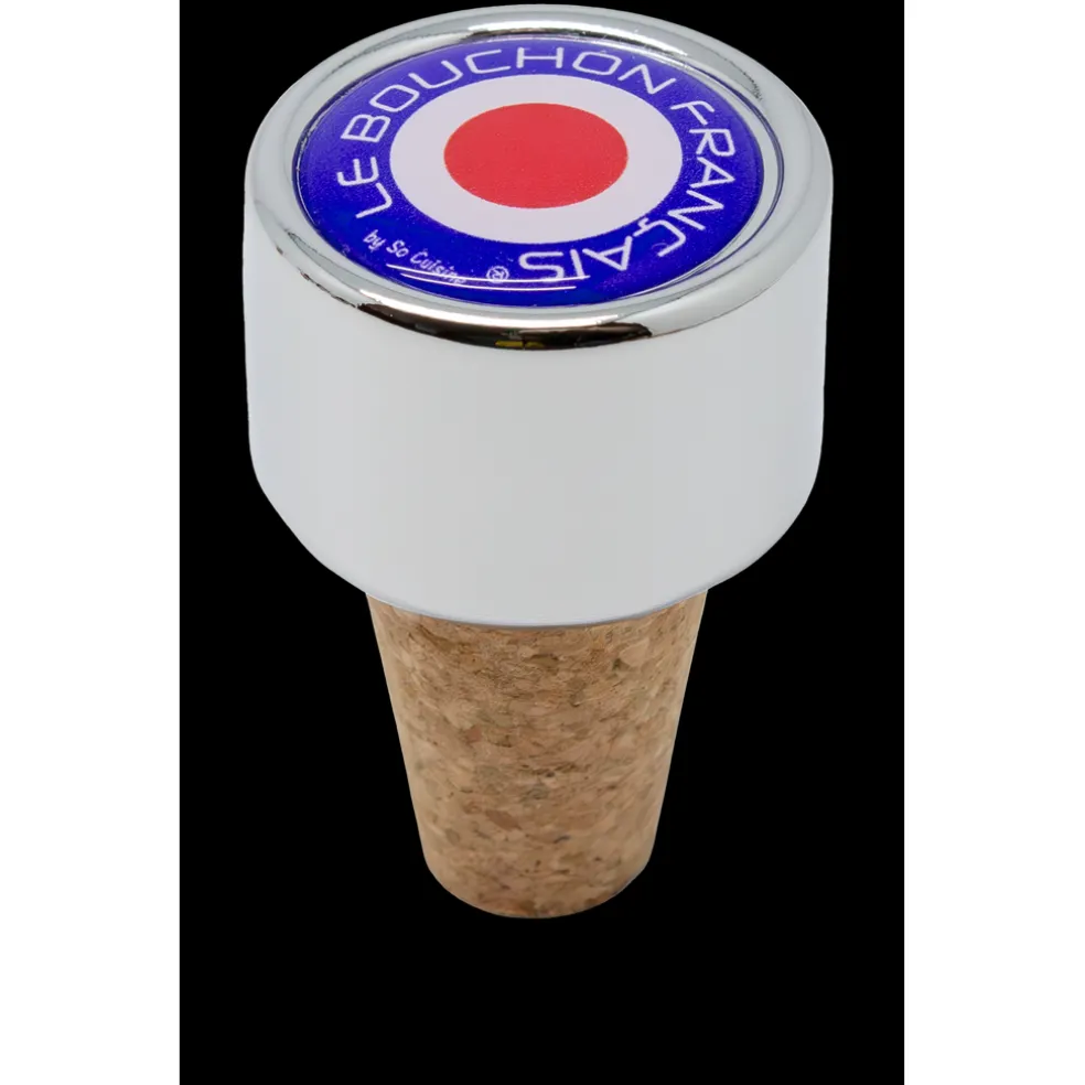 Un bouchon à vin traditionnel aux couleurs de la France, il s’adapte à toutes les bouteilles à vin. En acier chromé et liège.