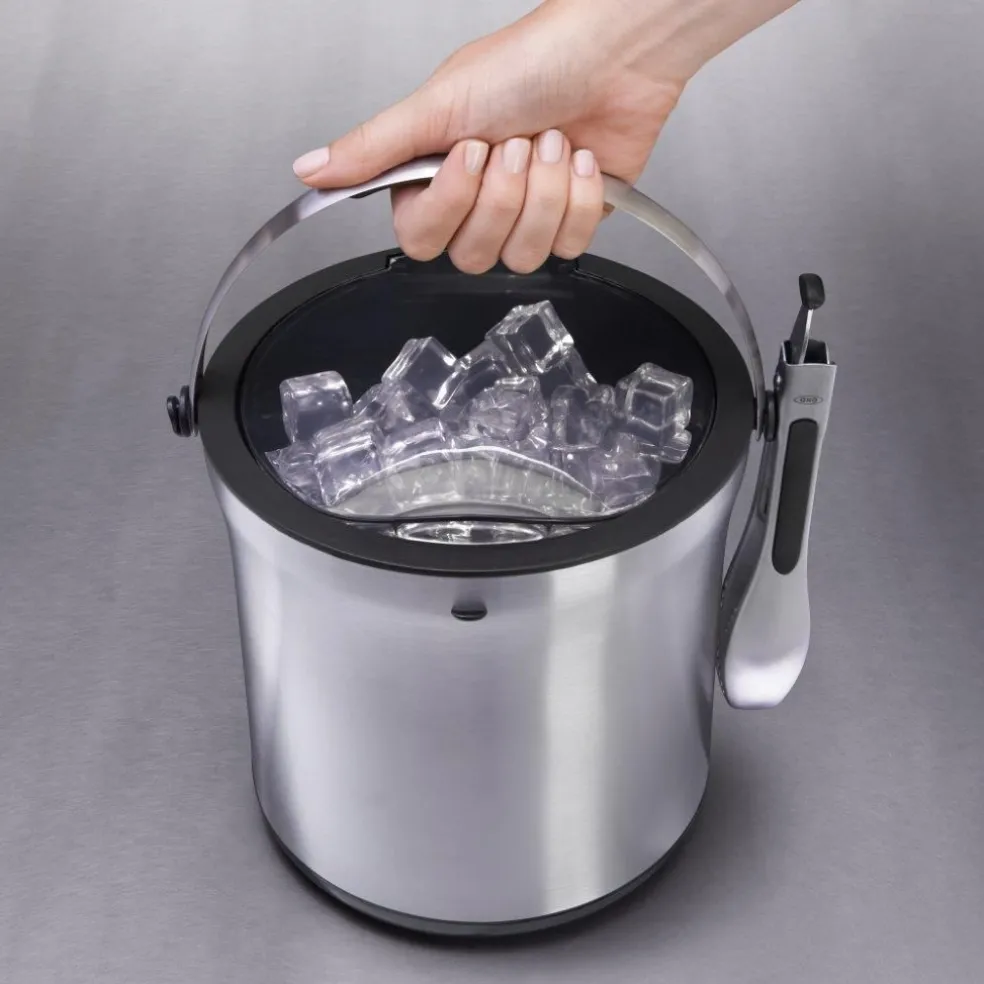 Avec sa grande contenance, le seau à glace avec pince OXO permet de stocker une grande quantité de glaçons; il peut aussi faire office d’élégant seau à champagne une fois le couvercle retiré.