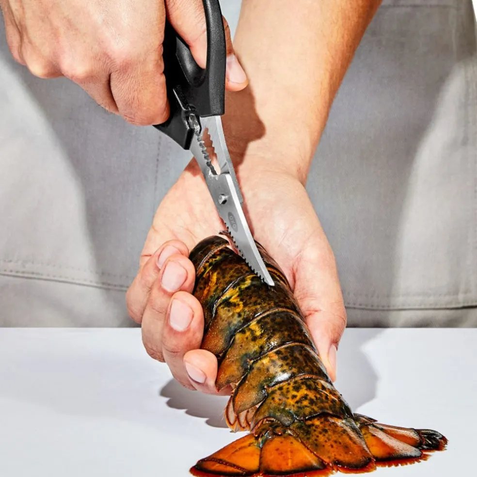 Les ciseaux à crustacés OXO s’utilise pour les coquillages et les poissons. Sa lame incurvée en acier inoxydable permet de décortiquer les queues de homard, les pinces de crabe et les crevettes sans abîmer la chair.