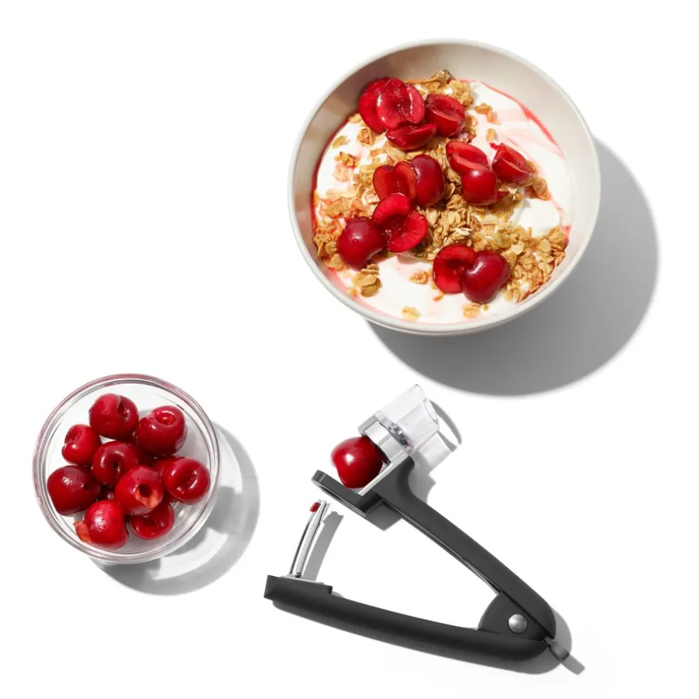 Le dénoyauteur OXO convient pour tous types de cerises et les olives. Poignées ergonomiques antidérapantes qui absorbent la pression. Capsule anti-éclaboussures amovible pour un nettoyage facile. Système de verrouillage pour le rangement.