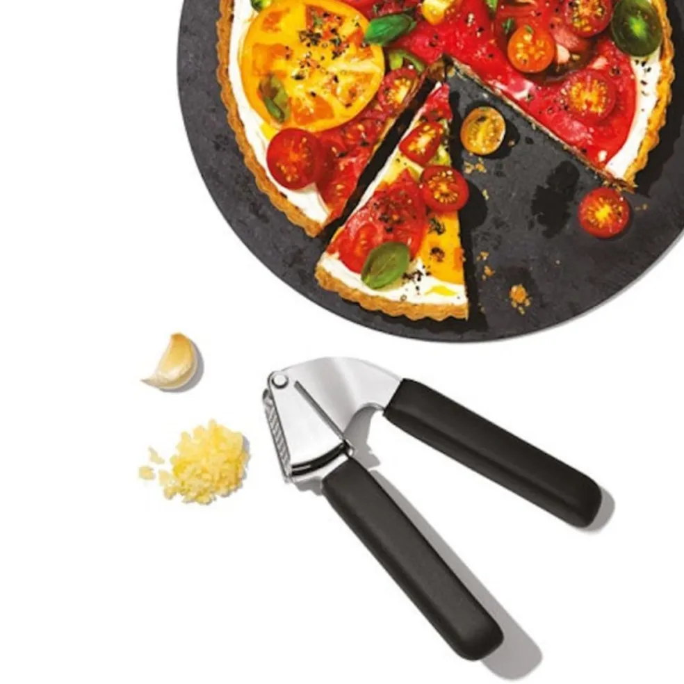 Pressez l’ail sans aucune odeur sur les doigts grâce à ce presse-ail OXO en acier inoxydable. Il dispose d’un système auto-nettoyant : en retournant le presse-ail, les picots rouges éliminent l’ail coincé dans les trous. Le nettoyage devient donc très facile. Le manche en santoprène antiglisse assure une utilisation simple et efficace.