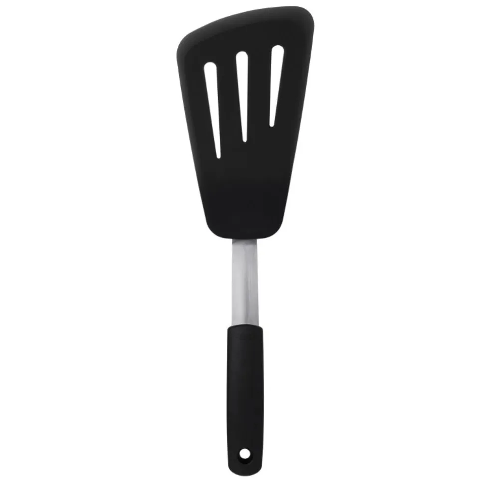 Spatule ajourée et flexible en silicone d’OXO. Idéale pour retourner des filets de poissons, des œufs au plat, des steaks hachés et toutes autres plats délicats.