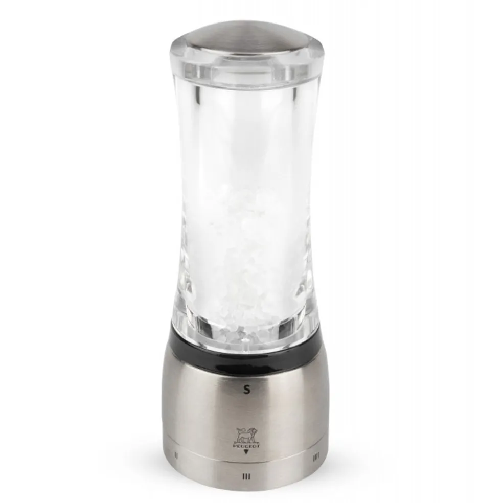 Ce moulin à sel de la collection Daman de Peugeot dispose du réglage de mouture breveté U’Select pour sélectionner la finesse souhaitée. 6 niveaux de réglage possibles. Le mécanisme à sel est conçu pour le gros sel de mer sec. Le couvercle du réservoir est aimanté pour un remplissage rapide et facile.