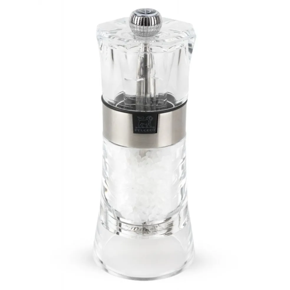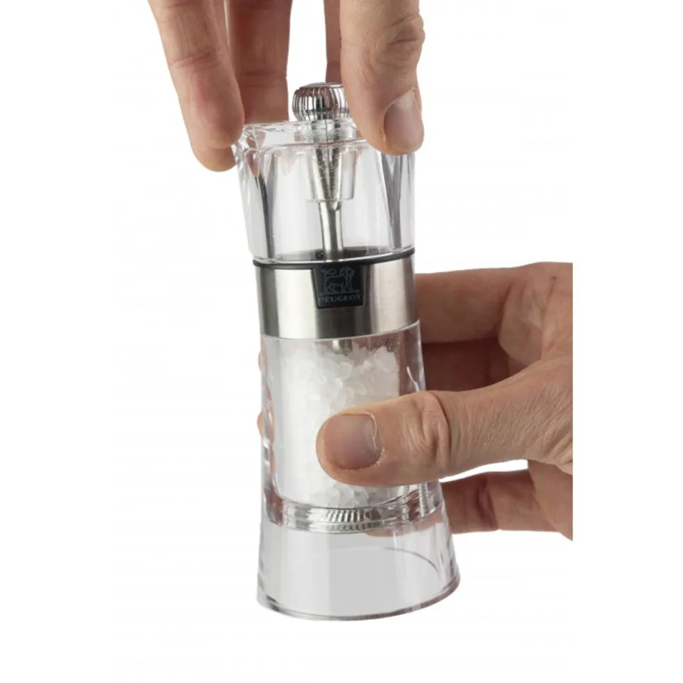 Moulin à sel Oslo manuel 14cm de PEUGEOT au design épuré. Un mix parfait entre transparence et élégance, le moulin Oslo habillera votre cuisine ainsi que votre table.