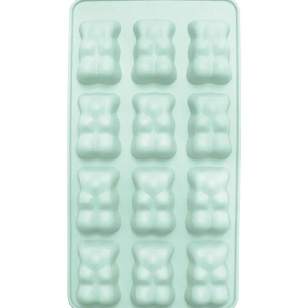 12 FORMES OURSONS – Composé de 12 cavités en forme de petits ours pour reproduire la taille et le look du traditionnel ourson à la guimauve. Dimensions de chaque cavité : 4,5 x 2,5 x H 1,5 cm. Coloris du moule : vert d’eau. Un ustensile polyvalent : adapté aussi bien pour vos oursons chocolat au cœur guimauve, que pour y verser vos pâtes et réaliser des gâteaux oursons.