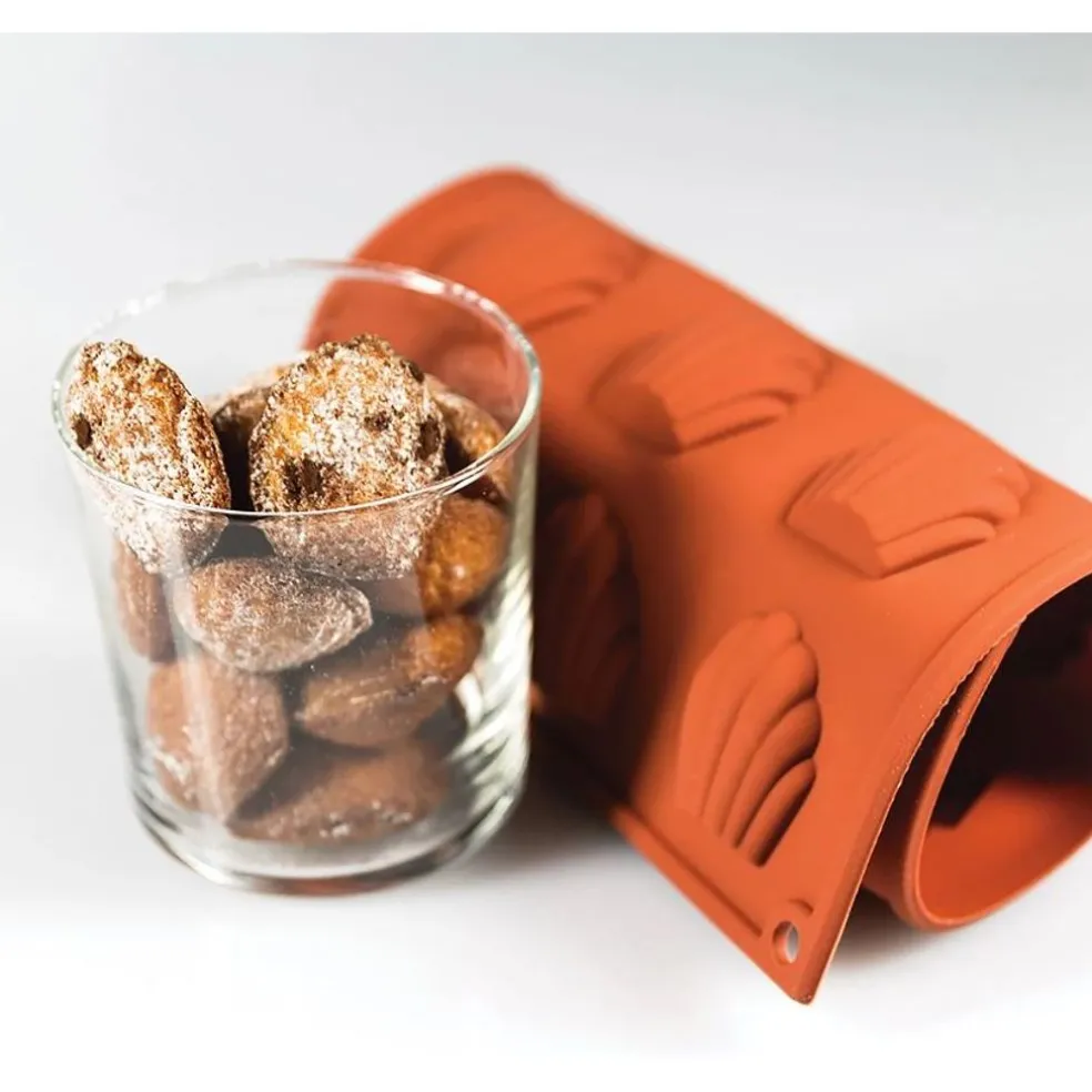Hygiénique et facile à entretenir, ce matériau offre une excellente diffusion de la chaleur pour une cuisson rapide et homogène, et sa souplesse permet un démoulage facile; vos madeleines n’attacheront pas et elles auront une forme parfaite.