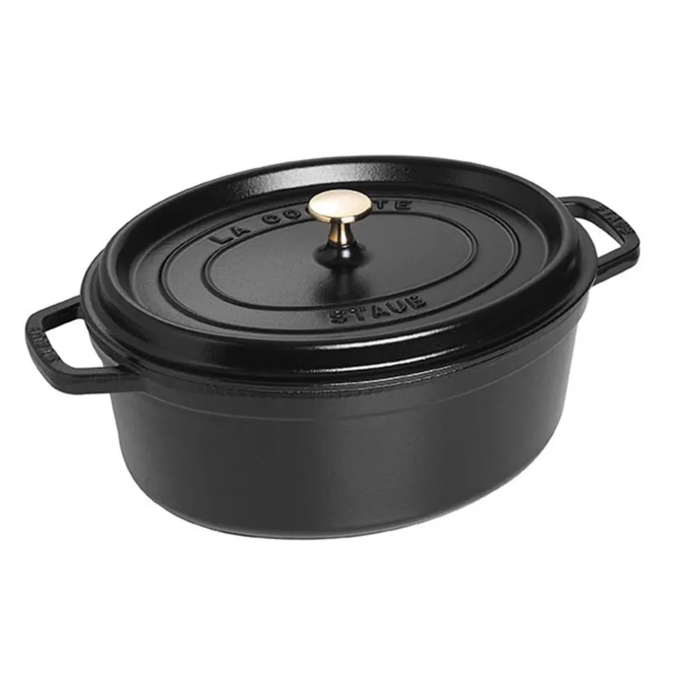 Préparez vos recettes à la perfection avec la cocotte en fonte noire ovale 37 cm de STAUB.