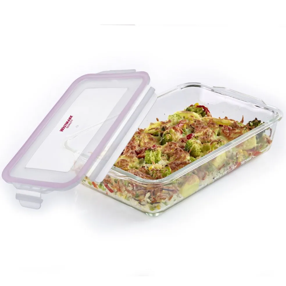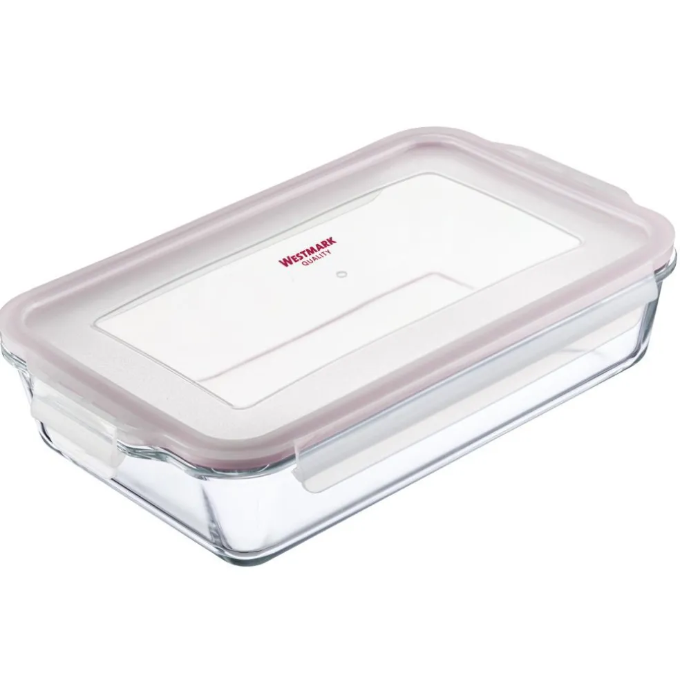 Boîte de conservation hermétique en verre borosilicate rectangulaire 2200 ml WESTMARK. Pour conserver, préparer, transporter et servir.