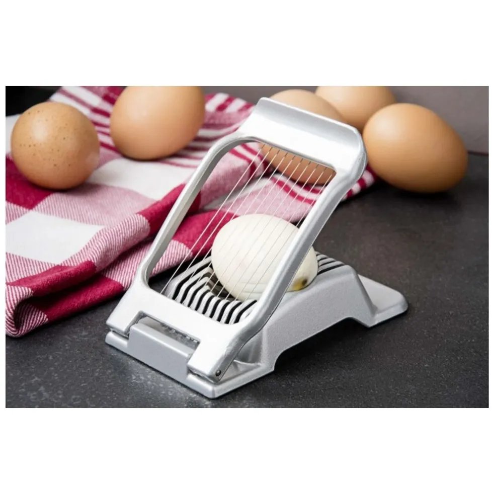 Facile à utilise et rapide, le tranche-oeuf Duplex de Westmark permet de couper vos œufs durs en tranches rondes et ovales parfaitement régulières grâce à ses fils en acier inoxydable.