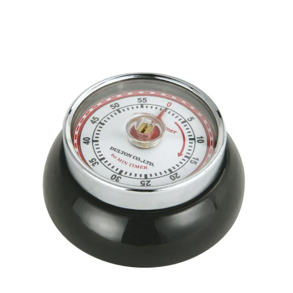 Ce minuteur mécanique au look rétro est réglable de 1 à 60 min.