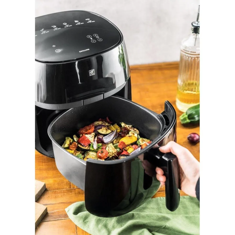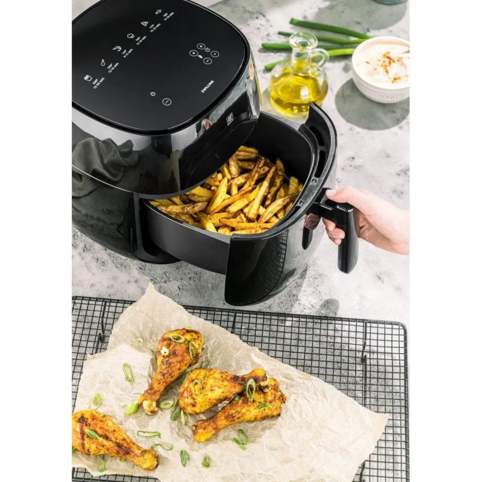 Simple et délicieux ! La friteuse sans huile AIR FRYER de ZWILLING® est votre tout nouvel appareil de cuisine pour préparer facilement des frites, une pizza ou des ailes de poulet.