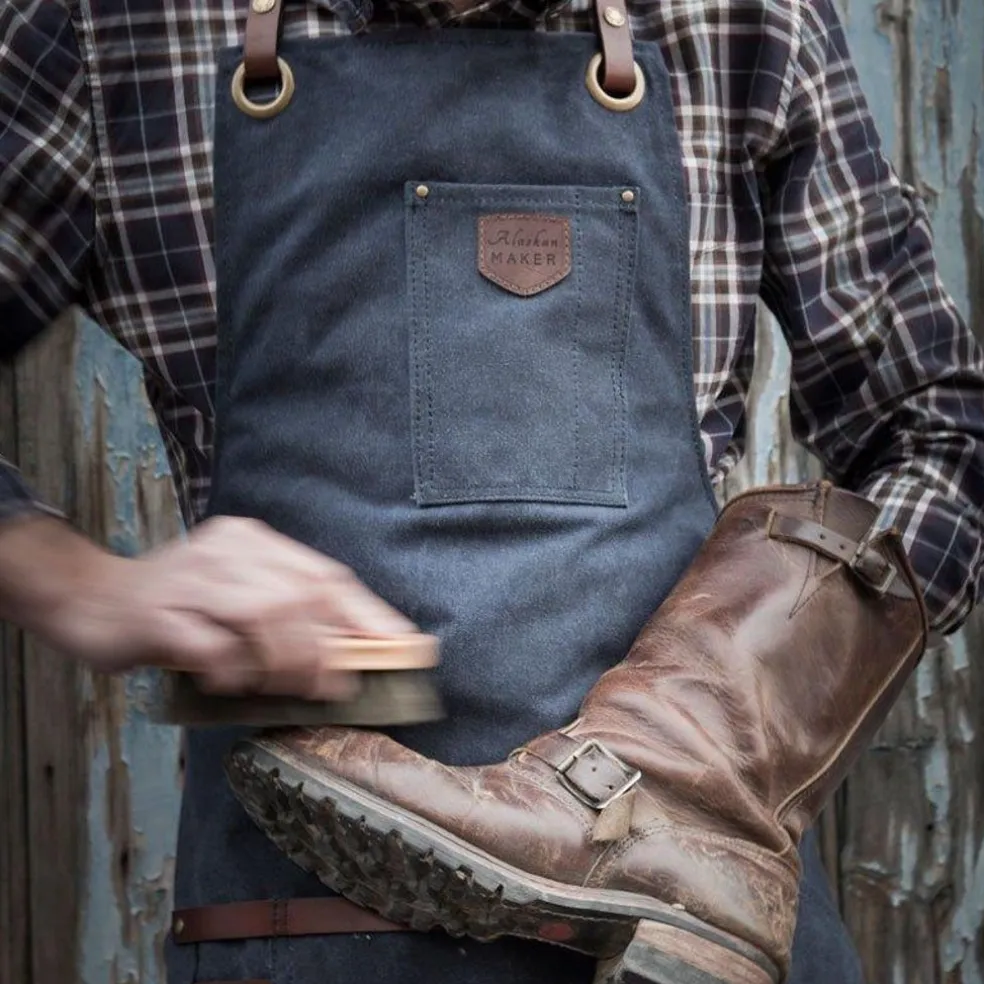 Fabriqué avec une épaisse toile 100% coton enduite permettant de mieux résister aux tâches et d’être imperméable, ce tablier Alaskan MAKER vous permettra de cuisiner, aiguiser, bricoler etc. avec style.