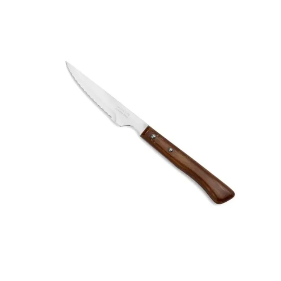 Sa lame de 11 cm en acier inoxydable ne craint pas la corrosion. Son manche en bois comprimé lui donne un style rustique et authentique.