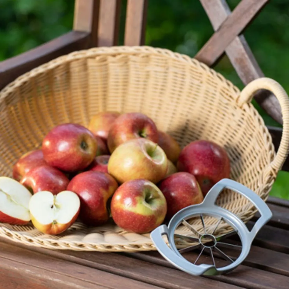 Des quartiers de pomme en quelques secondes ! Un ustensile pratique et efficace. Placez-le sur une pomme ou une poire et appuyer pour le faire descendre le long du fruit.