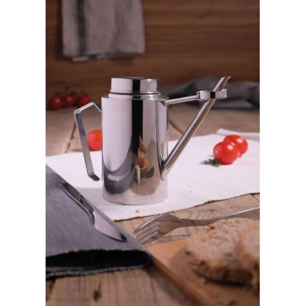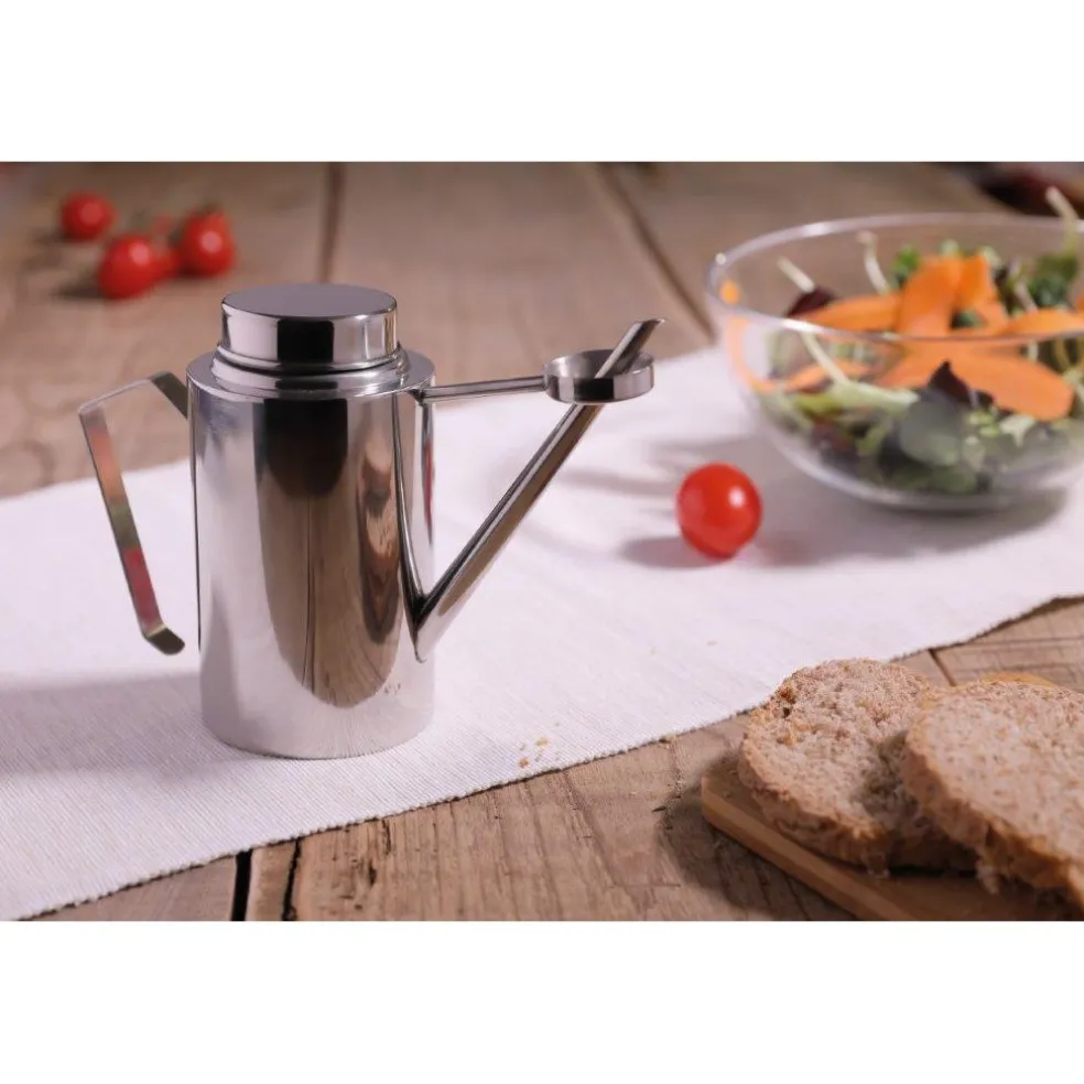 Burette à huile en inox, existe aussi en finition cuivrée.