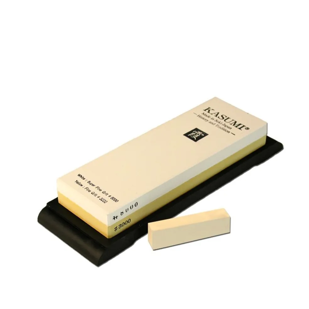Cette pierre à aiguiser double face KASUMI, avec un grain fin de 3000 pour un entretien régulier de vos lames de rasoirs d’un côté, qui conviendra pour un aiguisage secondaire, après un passage sur une pierre plus grossière dans le cas d’une remise en forme d’une lame, et de l’autre côté un grain très fin de 8000, pour le polissage du fil.
