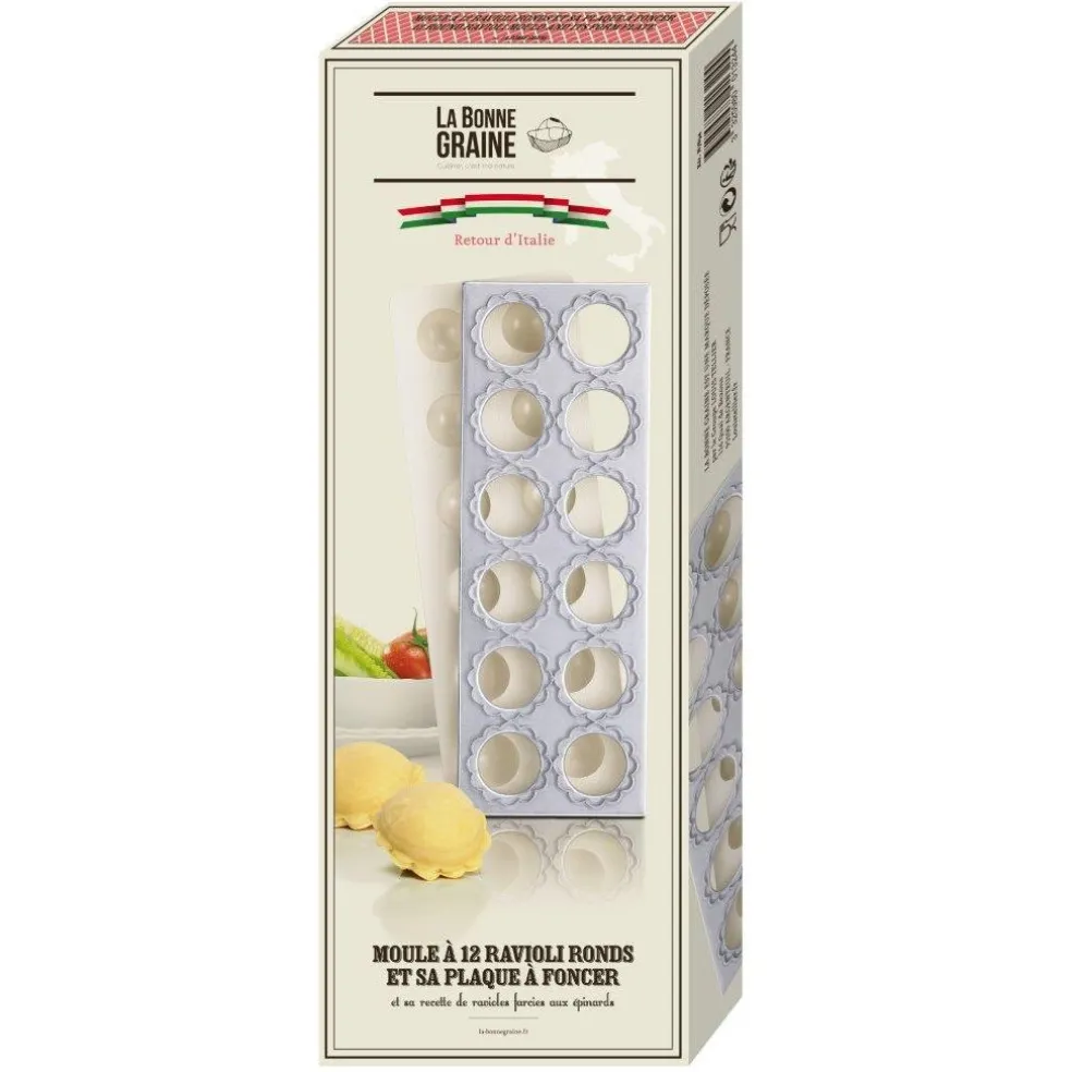 Moule à 12 raviolis ronds diamètre 4 cm et sa plaque à foncer.