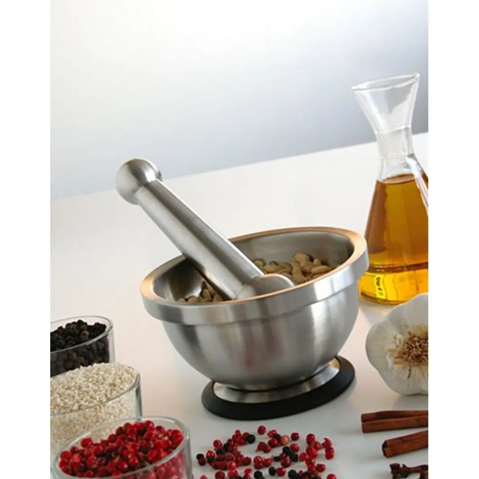Idéal pour moudre et piler les épices et les herbes, ce mortier de la marque Mastrad est également l’accessoire incontournable pour la préparation des cocktails dont l’incontournable Mojito. Sa finition épurée et son acier inoxydable en font. Bol à double paroi pour une isolation thermique idéal. Utilisable en bol à glaçon.