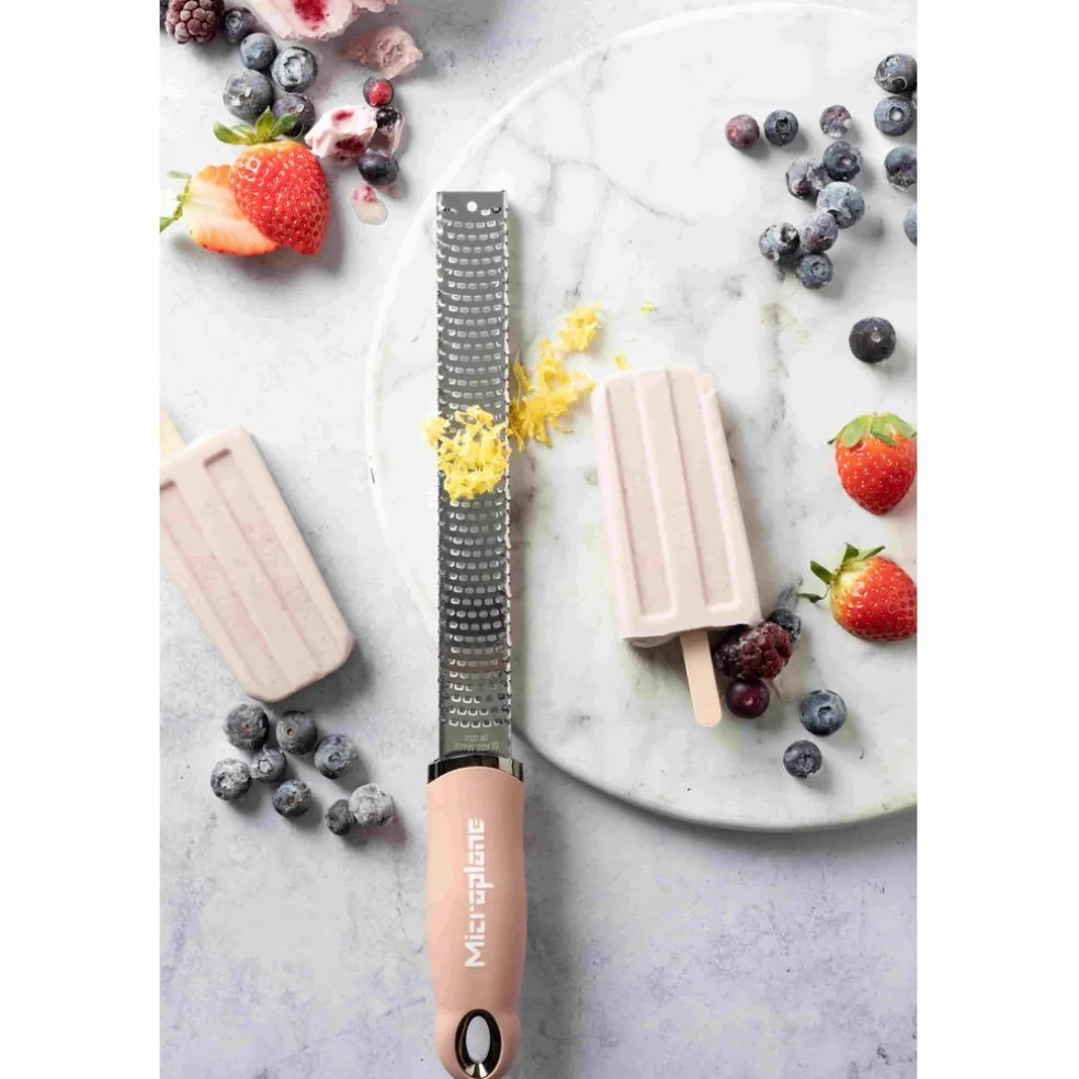 Le zesteur Microplane possède des bords tranchants fins comme des lames de rasoir qui coupent les aliments sans les déchiqueter ni les déchirer, permettant ainsi de préserver et d’intensifier leur arôme et leur parfum. C’est l’accessoire idéal des chefs pour zester les agrumes avec efficacité sans effort.