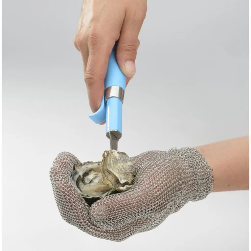 N’ayez plus peur de vous blesser en ouvrant vos huîtres et vos coquillages, la moufle O’Safe en cotte de maille vous protège de toutes les coupures.