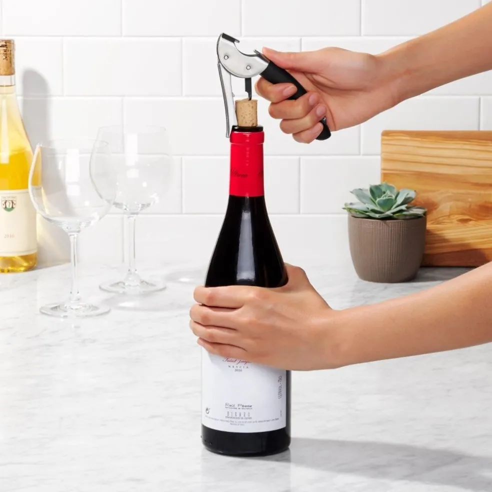 Le tire-bouchon sommelier à double levier en acier OXO est l’outil parfait pour ouvrir tout type de bouteille.
