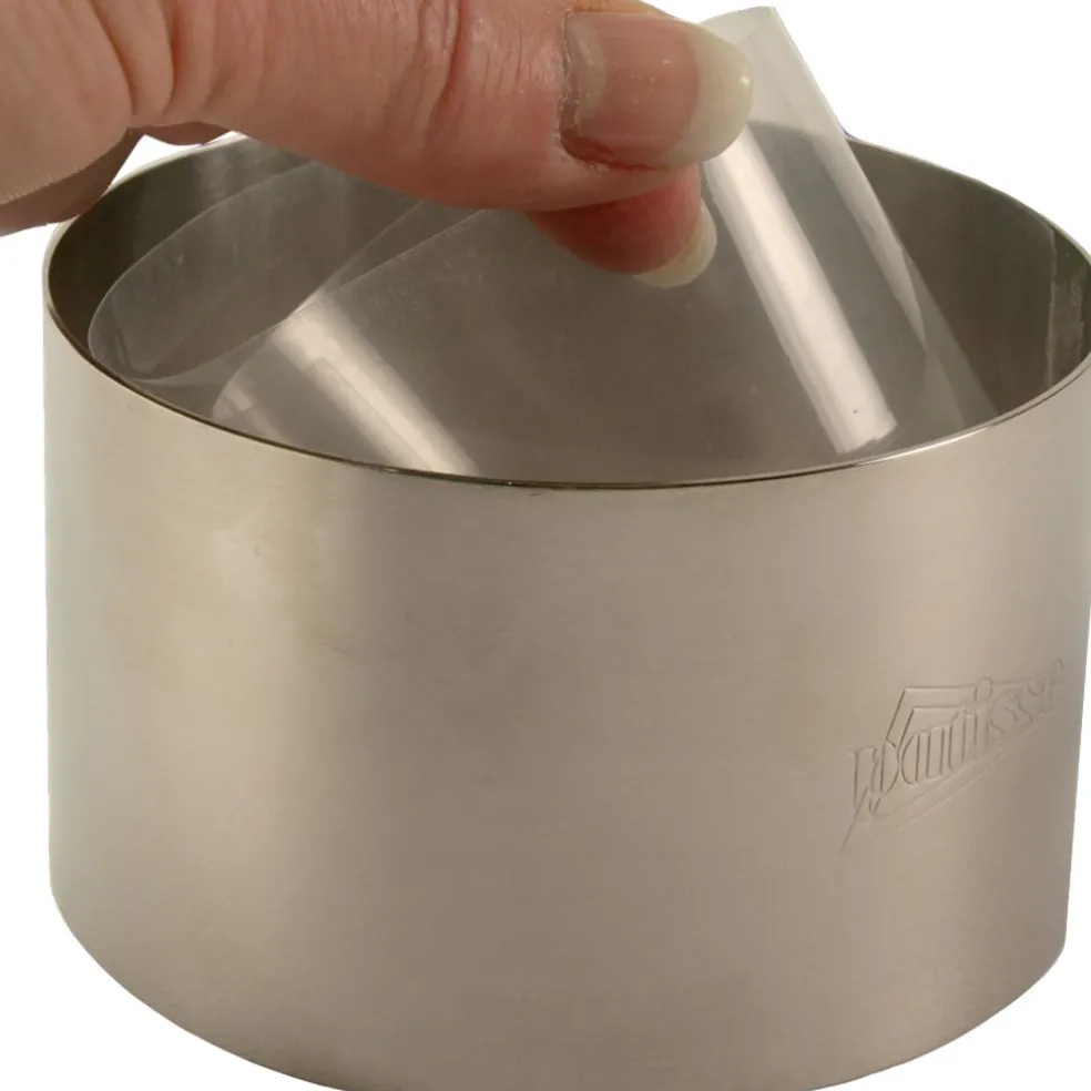 Le film à chemiser en rhodoïd est indispensable pour chemiser les cercles à pâtisserie à froid et faciliter ainsi le démoulage.