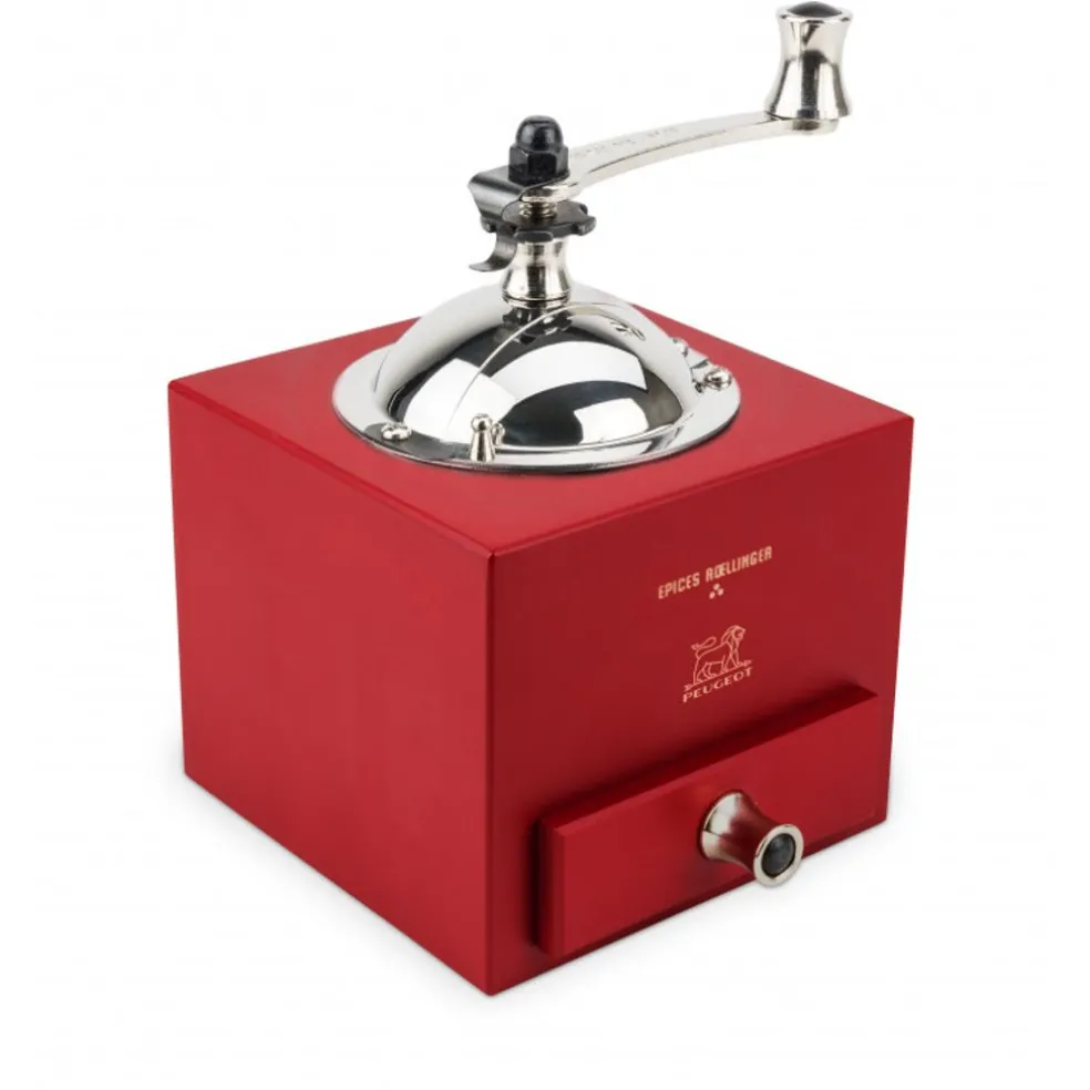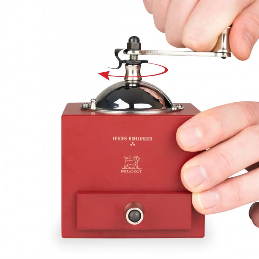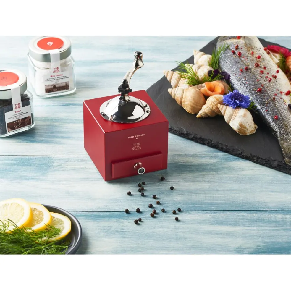 Le moulin à poivre Roellinger de Peugeot s’inspire du traditionnel moulin en bois et molette winch en acier à cran d’arrêt et tiroir de récupération de la mouture.
