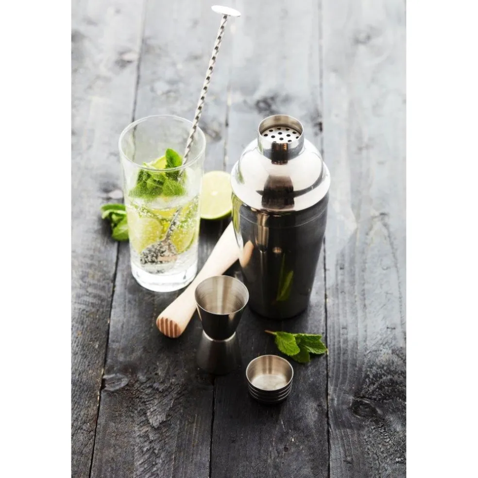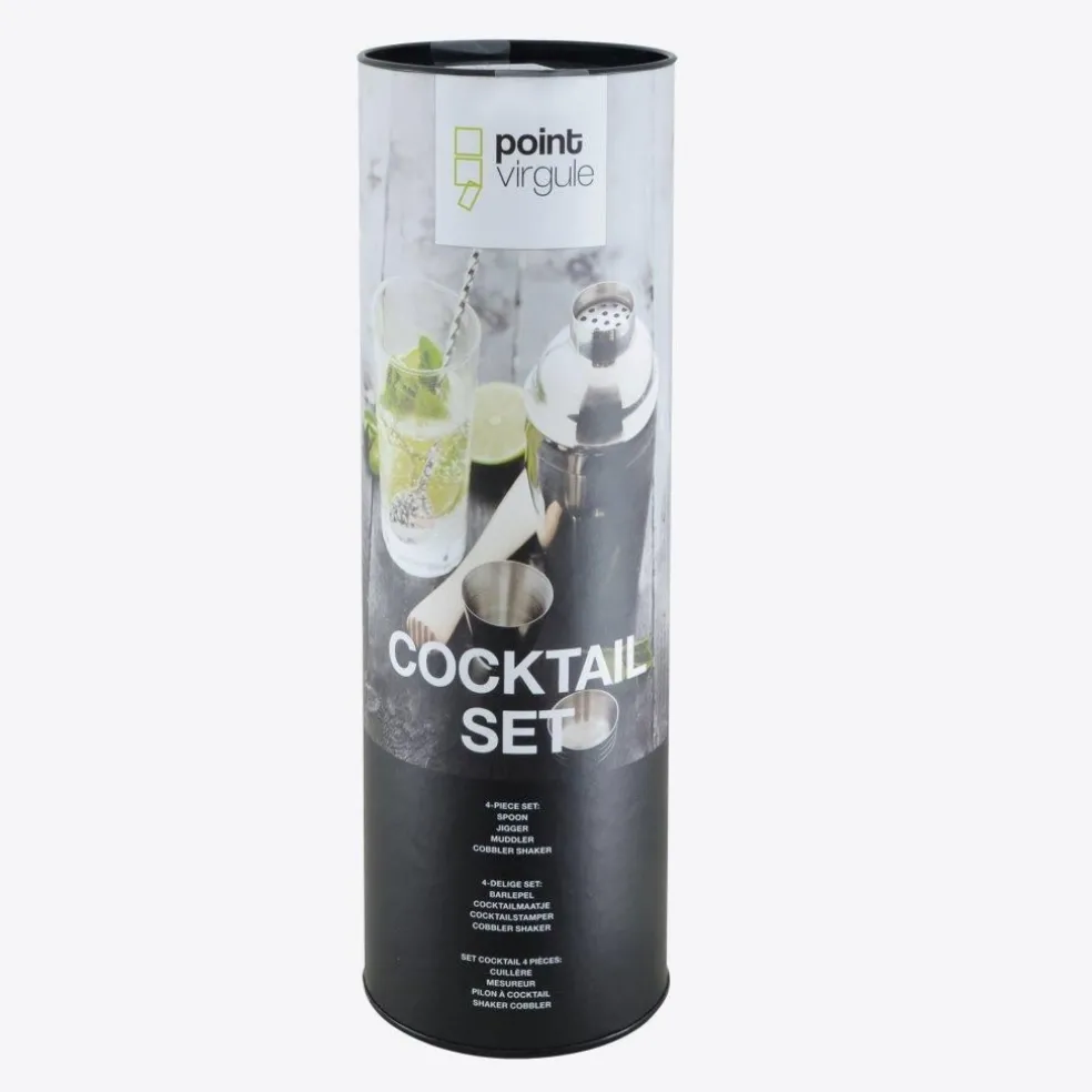 Ce coffret de POINT VIRGULE® comprend 1 shaker, 1 doseur double en acier inoxydable, 1 cuillère et 1 pilon en bois.