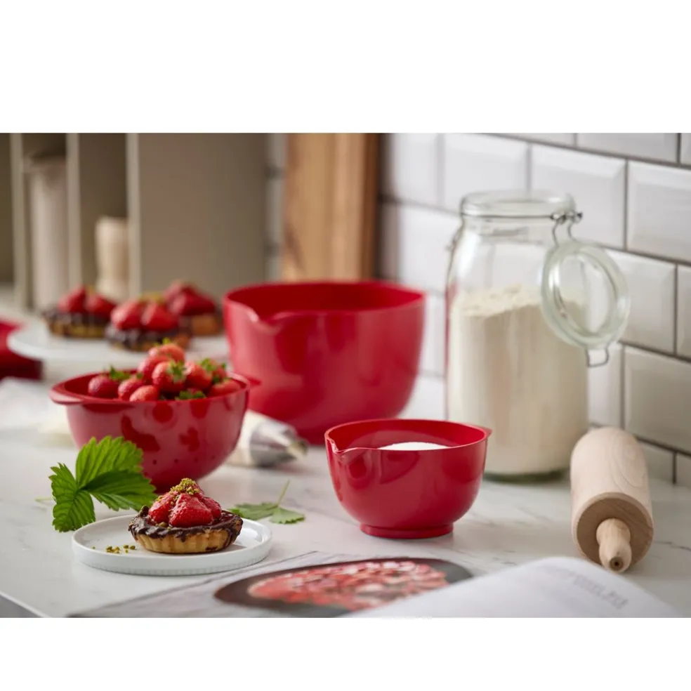 Le bol à mixer Margrethe de Rosti est un bol mélangeur classique avec une bonne prise en main, un bec verseur pratique et un anneau inférieur antidérapant. Cette nouvelle version est fabriquée en Durostima®, une matière plastique recyclable.